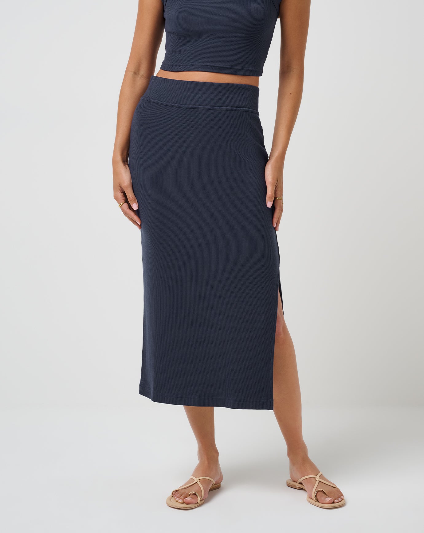 Effortless elegance? The CLOUD RIB SKIRT wrote the book on it. This high-rise midi skirt in our flattering Cloud Rib fabric skims your curves in all the right ways. with a side slit that’s just enough. Dress it down with sneakers or turn it up with heels—the matching Cloud Rib Pinot Tank takes this look to full-on icon status.