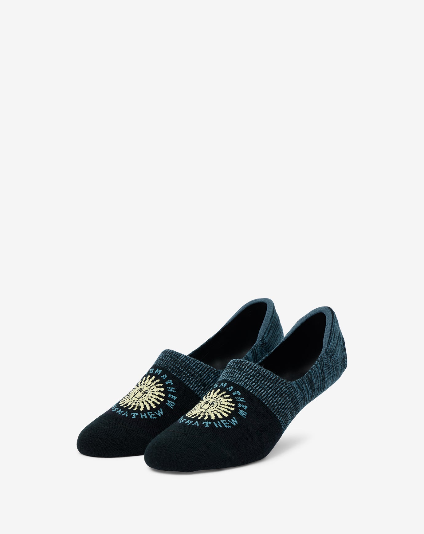 Expertly crafted with our comfort fabric blend. the FLOTATION DEVICE invisible no-show socks supply an ultra-cushioned sole. no-slip cuff. and a fun. abstract sun graphic across the foot.