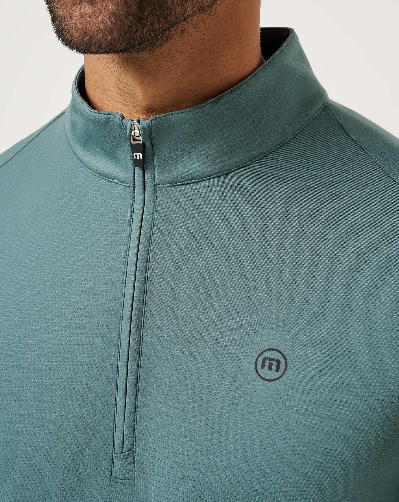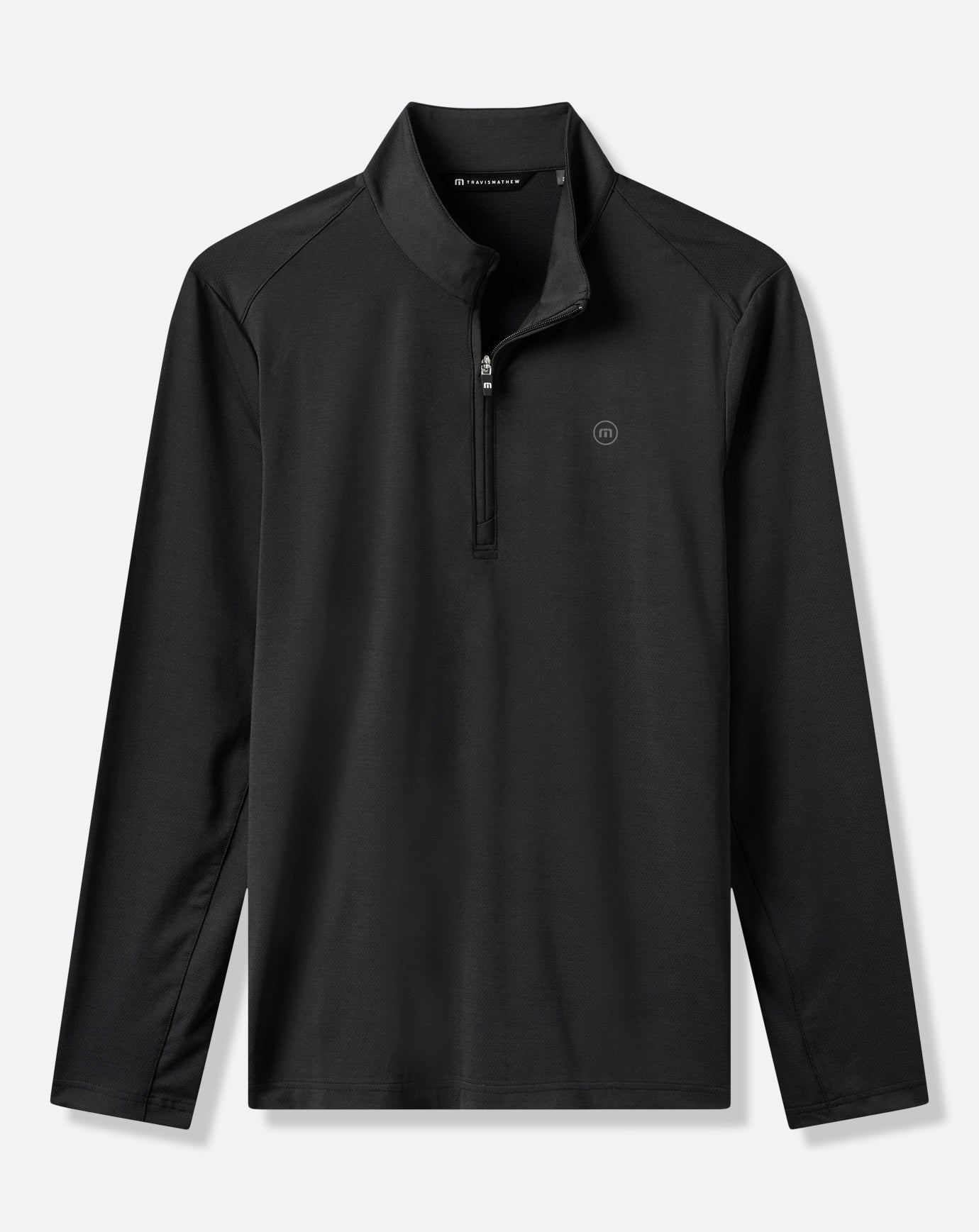 - TravisMathew circle icon on front chest